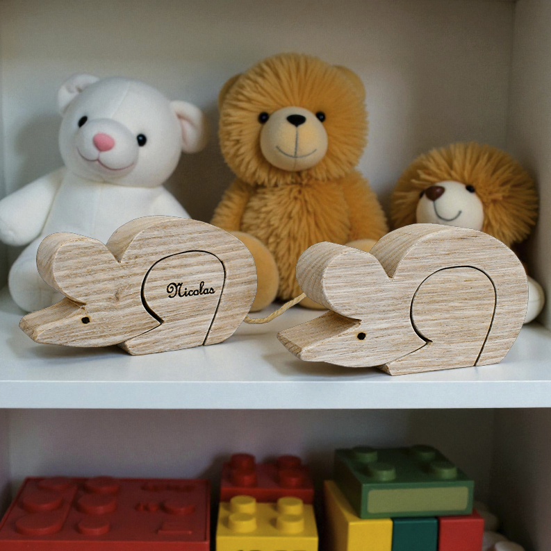 Boîte à dents de lait en bois de châtaignier, personnalisable avec le nom de l’enfant. L’enfant y dépose sa dent et la petite souris peut y glisser une pièce de 2 €. Le prénom est gravé des deux côtés. Fabriqué à la main et protégé par un vernis conforme au contact alimentaire. Dimensions : 11 × 6 × 3 cm.