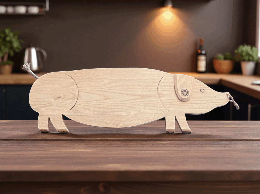 Originale et conviviale, notre planche apéro en forme de cochon est façonnée à la main en bois de châtaignier français.Chaque pièce est unique, avec un grain de bois naturel et un toucher soyeux.Idéale pour vos charcuteries, fromages, toasts ou tapas, elle ajoute une touche rustique et élégante à vos apéritifs.